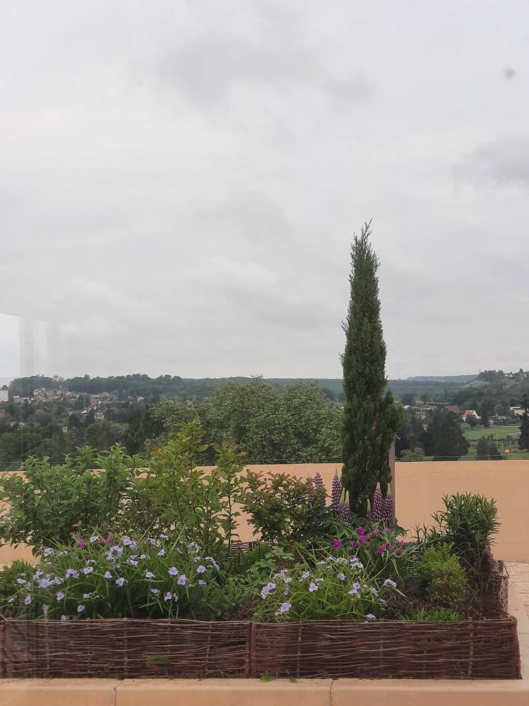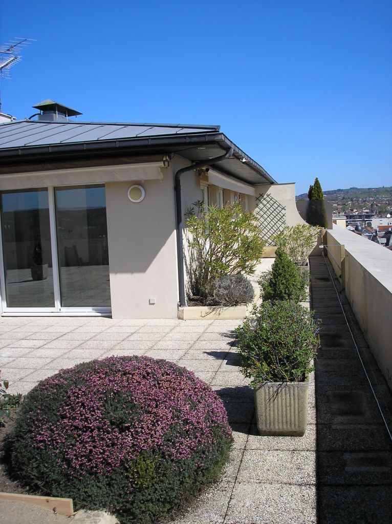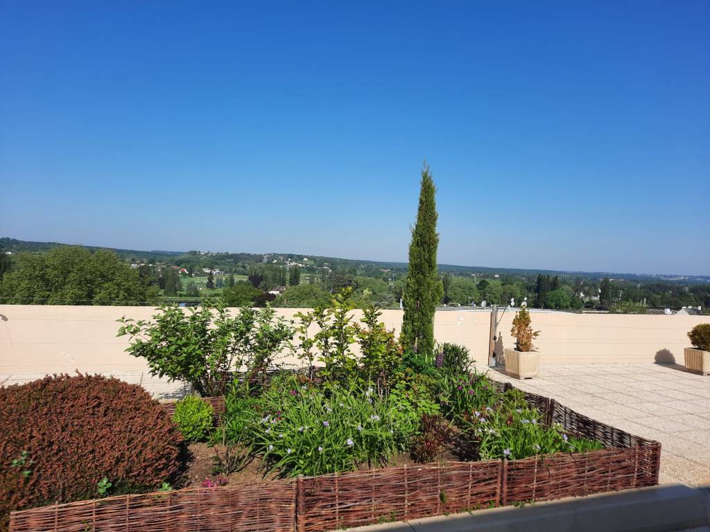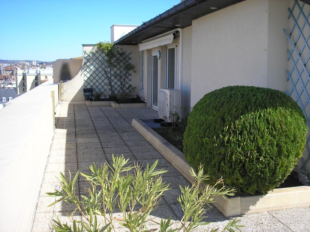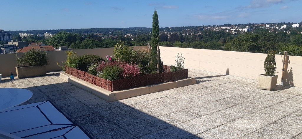 Aménagements extérieurs sur toiture terrasse Nettoyage haute pression du revêtement de sol et plantations