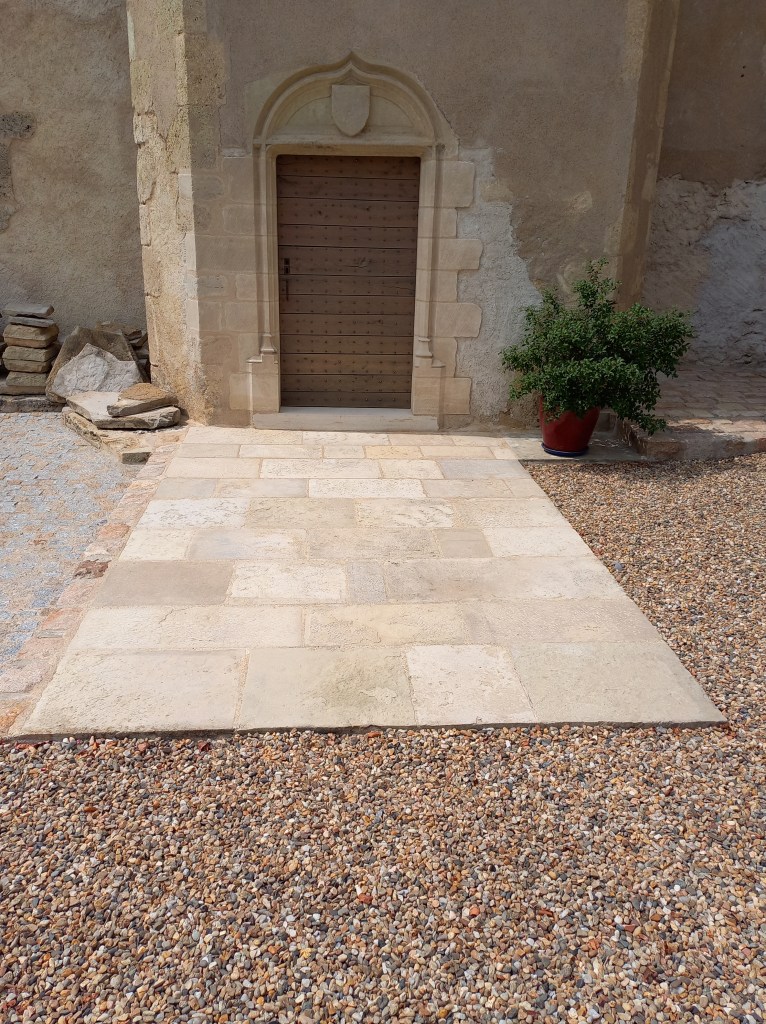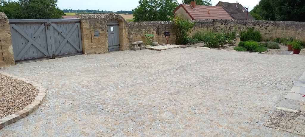 Jardin d’inspiration médiévale (pavés anciens et pierres de Volvic anciennes)