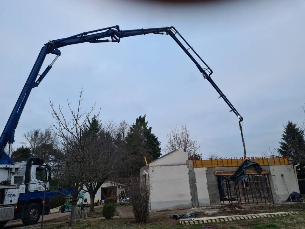 Travaux de rénovation pour pose d’une surélévation en ossature bois Travaux de démolition Réalisation d’un chaînage et de poutres en béton armé